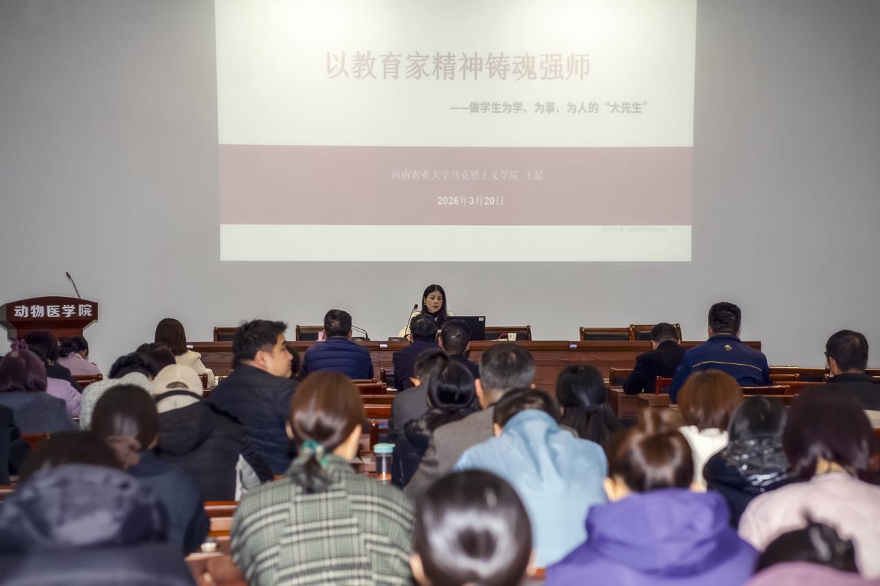 王晨副教授在第一实验楼六楼做师德建设专题报告。会议由副院长韩立强主持。
