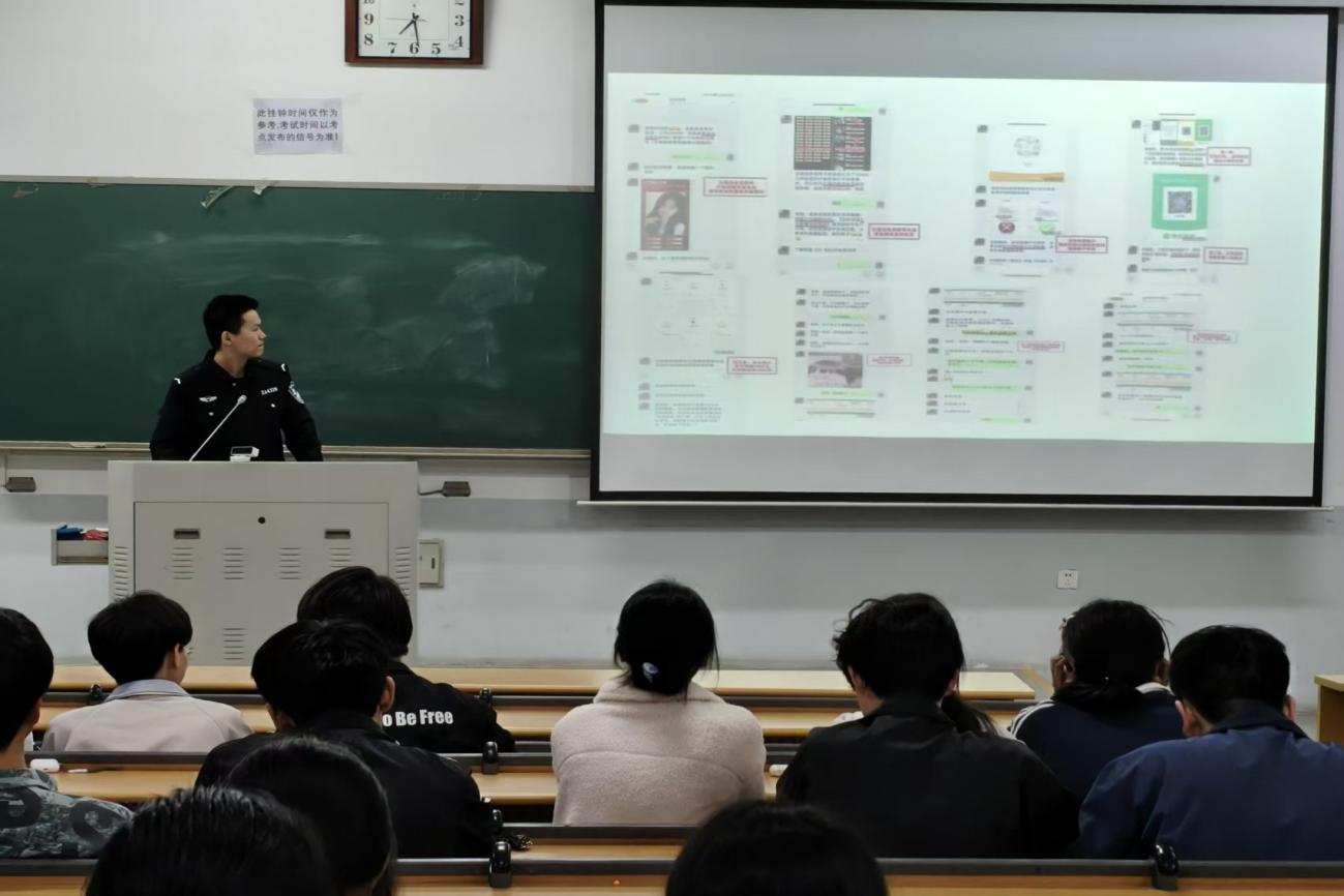 的学子们结合自身专业知识与校园反诈实际案例,用通俗易懂的语言,重点围绕大学生易受骗的游戏账号交易、虚假兼职以及街头推销等高发诈骗类型展开讲解,让同学们认清诈骗陷阱的隐蔽性与危害性。在讲解案例的同时,宣讲团成员还针对性地为同学们提供了实用的防诈骗方案。他们提醒大家要牢记“不轻信、不透露、不转账”的核心原则,切勿贪图小利,妥善保管个人银行卡、验证码等信息,遇到可疑情况及时与老师、家长沟通或报警求助。